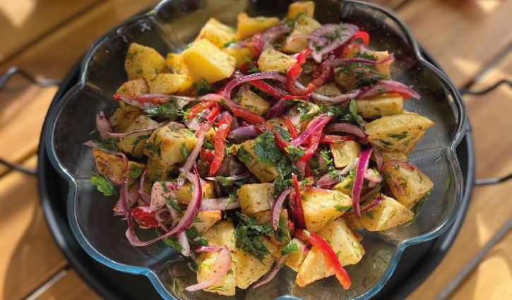 Potato salad is a type of salad prepared by cooking, mashing or chopping potatoes and flavored with various ingredients. Potato salad is often served at picnics, barbecues, lunches or as a side dish. It is known as a popular recipe because it is both easy to prepare. Can be personalized in a variety of ways.